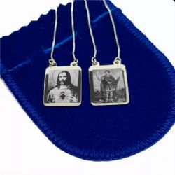 Escapulário Prata 925 Sagrado Coração Jesus e Santo ExpeditoO escapulário é de prata 925 e é composto de 2 placas 1,6x2,0cm e corrente total de 60cm.