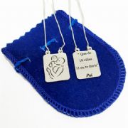 Escapulário de Prata 925 Pai e Bebê - Frase Curta Escapulário de Prata 925 Pai e Bebê - Frase Curta O escapulário é de prata 925 e é composto de 2 placas 1,6x2,0cm e corrente total de 60cm. Imagens gravadas em baixo relevo, direto no metal. Enviamos sua peça em até 3 a 4 dias úteis após comprovação do pagamento se tivermos o modelo em estoque. Recomendamos que você confirme antes de comprar, se estiver com urgência. Acompanha certificado de garantia e recomendações de cuidados. O certificado garante o material utilizado e defeitos de fabricação, por 3 meses. Não cobre defeitos por mau uso da peça. * a prata é um material com tendência natural em oxidar, principalmente se a pessoa que usar tiver taxa de ácido úrico alto. A garantia não cobre esse processo. Enviamos Nota Fiscal, informe seu cpf ao comprar.