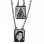 Escapulário de aço com foto colorida Escapulário de aço com foto colorida Uma jóia de imagem A gravação da foto na frente da peça está inclusa no preço. Gravação colorida por processo de transferência. A foto você vai nos enviar por email atendimento@fotogravacao.com.br É possível gravar qualquer imagem. As fotos de pessoas podem ser juntas ou em fotos separadas, fazemos a montagem mais adequada ao modelo desejado. As fotos devem ser enviadas por email. Escolha fotos com boa iluminação, nítidas e com boa resolução. A imagem a ser gravada vc nos envia pelo email atendimento@fotogravacao.com.br , por onde também, pode tirar suas dúvidas Acompanha garantia do material utilizado. Cobre defeitos de fabricação, mas não cobre má utilização da peça. Acompanha recomendações de cuidados para maior durabilidade de sua peça.