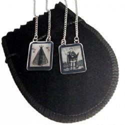 Escapulário Aço Sagrado Coração de Jesus e Santo ExpeditoEscapulário de aço personalizado com imagens religiosas.
