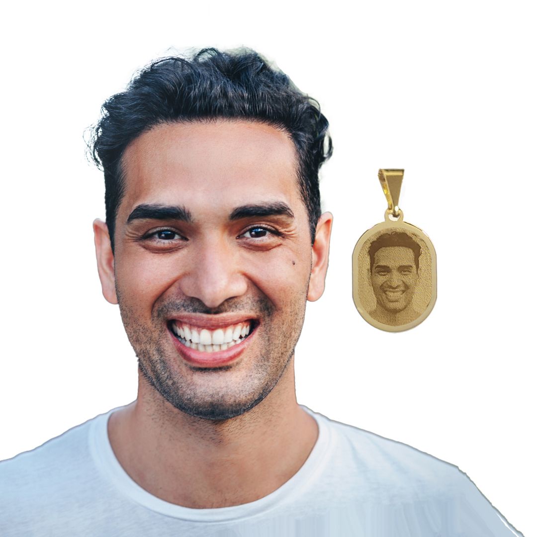 Este pingente folheado a ouro personalizado com foto é uma joia criada para eternizar momentos únicos e cheios de significado. Possui tamanho ideal para uso diário, mantendo elegância, leveza e presença. A personalização é feita por fotogravação de alta precisão, uma técnica que transfere a imagem diretamente para a superfície do pingente em baixo relevo direto no metal, sem uso de cores, garantindo riqueza de detalhes, durabilidade e um acabamento sofisticado.