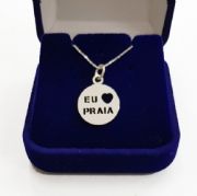 Colar Pingente Eu Amo Praia Prata 925Pingente e corrente em prata 925
