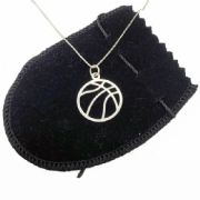 Colar Pingente de Prata Bola Basquete Corrente 45cmPingente e corrente em prata 925.