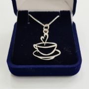 Colar Pingente Xícara Café,Chá Delicioso Prata 925Pingente e corrente em prata 925