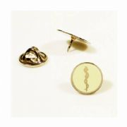 Pin Botton Folheado a Ouro Publicidade Pin Botton Folheado a Ouro Publicidade Botton de aço folheado a ouro. Redondo de 1,5x1,5cm. Imagem gravada em baixo relevo sem uso de cores. Enviamos no prazo de 3 dias úteis.