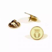 Pin Botton Folheado a Ouro Pedagogia Coruja Pin Botton Folheado a Ouro Pedagogia Coruja Botton de aço folheado a ouro. Redondo de 1,5x1,5cm. Imagem gravada em baixo relevo sem uso de cores. Enviamos no prazo de 3 dias úteis.