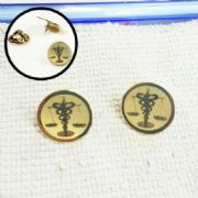 Pin Botton Folheado a Ouro Oftalmologia Pin Botton Folheado a Ouro Oftalmologia Botton de aço folheado a ouro. Redondo de 1,5x1,5cm. Imagem gravada em baixo relevo sem uso de cores. Enviamos no prazo de 3 dias úteis.