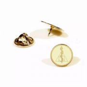 Pin Botton Folheado a Ouro Publicidade Pin Botton Folheado a Ouro Publicidade Botton de aço folheado a ouro. Redondo de 1,5x1,5cm. Imagem gravada em baixo relevo sem uso de cores. Enviamos no prazo de 3 dias úteis.