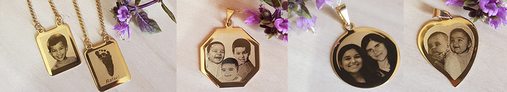 Podemos gravar sua foto, de algúem que você gosta, de seu animal de estimação. o logotipo de sua empresa, seu ídolo favorito, um desenho, uma obra de arte... enfim, qualquer imagem pode ser gravada neste processo. Ouse, Crie! Tenha jóias personalizadas!